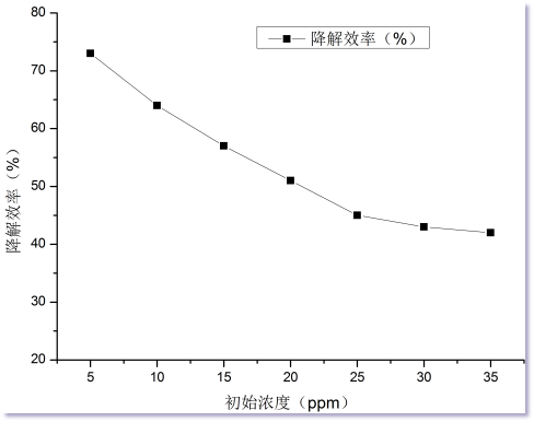 1、隨著甲苯濃度增高,降解效率降低。這是由于真空紫外燈發(fā)射的185 nm的紫外線能量強(qiáng)度有限,單位時(shí)間內(nèi)光解效率下降。 2、單純的增加燈管的數(shù)量是無(wú)法解決高濃度有機(jī)氣體問(wèn)題,紫外光解技術(shù)不適合中高濃度VOCs氣體。