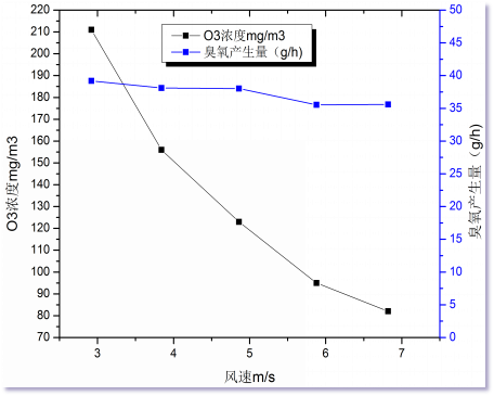 1、真空紫外設(shè)備進(jìn)口的風(fēng)速影響了紫外燈的燈管表面溫度,燈管表面溫度與紫外燈的發(fā)光效率有直接關(guān)系,燈表溫高于某一數(shù)值時(shí)會(huì)直接影響其發(fā)光效率。 2、風(fēng)速增大,臭氧濃度降低,臭氧產(chǎn)生量沒(méi)有明顯變化,說(shuō)明在3m/s時(shí)真空紫外已經(jīng)被空氣中氧氣充分吸收,增大空氣進(jìn)氣量,燈管自身產(chǎn)生的臭氧量沒(méi)有明顯增加。