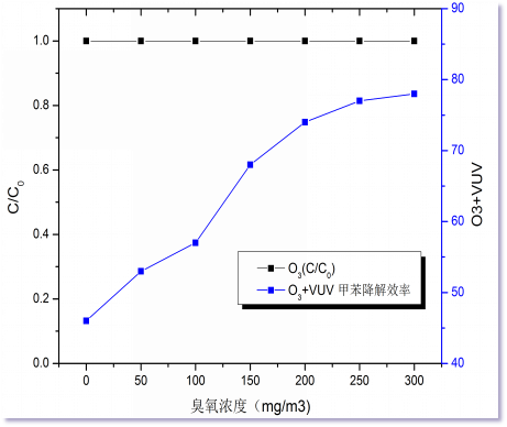 1、臭氧與甲苯在自然狀態(tài)下是不發(fā)生化學(xué)反應(yīng)的。 2、臭氧協(xié)同真空紫外 臭氧協(xié)同真空紫外對(duì)甲苯是有降解效果的。 254 nm的紫外光可以促進(jìn)臭氧產(chǎn)生氧自由基,從而氧化甲苯。 臭氧在真空紫外條件下與空氣中的水蒸氣可產(chǎn)生羥基自由基,羥基自由基可氧化甲苯。