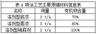 四、工程案例 江蘇省張家港市某機械企業(yè)對其噴涂工藝產(chǎn)生的揮發(fā)性有機物進行綜合整治。通過技術(shù)交流,現(xiàn)場考察,確定整體治理方案,安裝調(diào)試完畢后,由第三方檢測機構(gòu)現(xiàn)場檢測,檢測數(shù)據(jù)滿足現(xiàn)行的各項政策標(biāo)準內(nèi)的排放指標(biāo)。 現(xiàn)對該公司的整體治理方案進行簡要說明。 4.1涂料方面 該機械企業(yè)原本使用溶劑型涂料進行噴涂作業(yè)(具體參見表4),在噴漆+晾干過程會產(chǎn)生有機廢氣,主要成分為:漆霧顆粒物、甲苯、二甲苯、醋酸乙酯、醋酸丁酯、環(huán)已酮及其他有機廢氣。按照《江蘇省重點行業(yè)揮發(fā)性有機物排放量計算暫行辦法》估算,揮發(fā)性有機物產(chǎn)生量為:底漆3噸*70%+面漆3噸*60%+稀釋劑2噸=5.9噸。 針對此情況,推薦其使用不含苯類成分的水性涂料,從源頭控制揮發(fā)性有機物的產(chǎn)生量。水性涂料信息參見表5。 4.2廢氣收集 綜合考慮客戶的噴涂工藝和工件大小,結(jié)合相關(guān)環(huán)保要求,選用全密閉噴漆房作為噴漆作業(yè)區(qū),噴漆房呈微負壓狀態(tài),密閉操作時基本無外逸有機廢氣,廢氣收集效率達90%以上。 噴漆房大小L7000*W4000*H3500mm,處理風(fēng)量為30000m³/h,噴漆工段階段性作業(yè),年作業(yè)時間約300h。 4.3廢氣治理 采用干式漆霧過濾器+UV光氧催化+活性炭吸附聯(lián)合處理工藝,對噴涂廢氣進行處理,處理效率達95%以上。噴漆過程產(chǎn)生的漆霧和揮發(fā)性有機物經(jīng)抽風(fēng)系統(tǒng)送入干式漆霧過濾器除去大部分漆霧和顆粒物,剩余氣體進入UV光催化氧化設(shè)備,運用高能UV紫外線光束及臭氧對有機氣體進行協(xié)同分解氧化反應(yīng),使其降解化成低分子化合物,剩余未來得及反應(yīng)的廢氣及臭氧同時進入活性炭設(shè)備,活性炭起到緩沖作用,經(jīng)活性炭充分吸附凈化后經(jīng)15m高排氣筒達標(biāo)排放。詳細數(shù)據(jù)參見下列表格。
