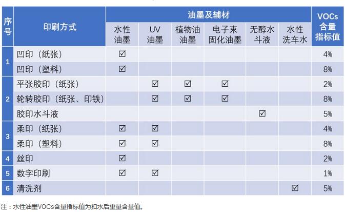 印刷業(yè)特別是溶劑型印刷工藝是工業(yè)企業(yè)VOCs的重要來(lái)源,而其排放源頭即為含VOCs油墨和印刷材料的使用,因此建立印刷油墨低VOCs含量指標(biāo)值,引導(dǎo)和鼓勵(lì)企業(yè)應(yīng)用,是印刷業(yè)源頭減排的一項(xiàng)積極措施。