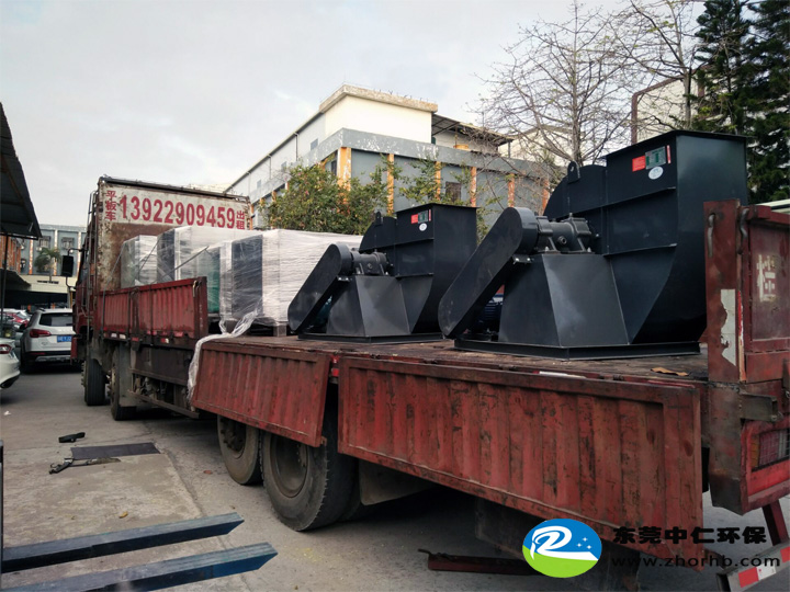 東莞市震宇塑膠實業(yè)有限公司上個月委托我們中仁環(huán)保公司做有機廢氣處理工程。我們的工程師根據(jù)實地的考察和結(jié)合同類型的案例,最后選用UV光解除臭+低溫等離子凈化工藝。因此,我們公司在合同規(guī)定的時間完成了設備的生產(chǎn),并打包好,準備發(fā)往客戶的公司。