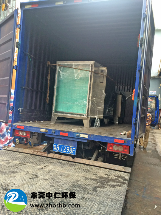 東莞鳳崗某公司在上個月向我們中仁環(huán)保公司訂購了兩臺UV光解除臭設(shè)備。在今天完成了生產(chǎn),并打包裝車發(fā)往客戶那里。