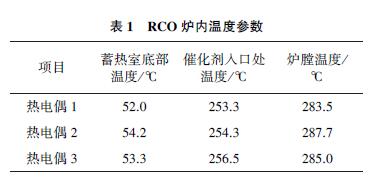 三、運(yùn)行參數(shù) 實(shí)際運(yùn)行過(guò)程中RCO爐內(nèi)溫度參數(shù)見(jiàn)表1。