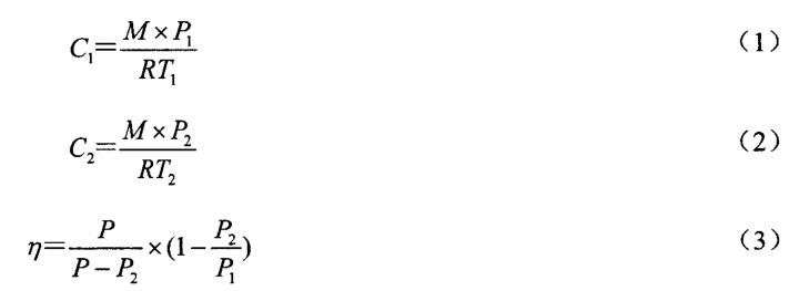 式中:Cl為氣體的冷凝前濃度,g/m ;C2 為氣體的冷凝后濃度,g/m;M 為氣體物質(zhì)的分子量;P l為氣體在T1 時(shí)飽和蒸氣壓;P2為氣體在T2時(shí)飽和蒸氣壓;R 為常數(shù) ,為 8.314;P為大氣壓,101325 Pa;r/為冷凝效率。 在75℃時(shí),對(duì)應(yīng)排氣中有機(jī)物最高飽和質(zhì)量濃度及爆炸范圍相關(guān)數(shù)據(jù)詳見表1。