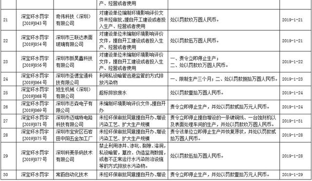 2019年第一季度,原深圳市寶安區(qū)環(huán)境保護和水務(wù)局共作出86宗環(huán)境行政處罰決定,處罰金額共計1228.457萬元,其中,處罰金額大于或等于5萬元人民幣的重大環(huán)境違法案例共有59宗。 現(xiàn)將寶安區(qū)2019年第一季度,59宗重大環(huán)境違法案件予以公開曝光,接受社會監(jiān)督,督促違法單位或個人守法經(jīng)營。 2019年第一季度重大環(huán)境違法案件曝光臺