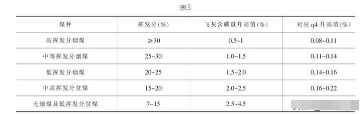 (Vdaf)含量高低影響。表3給出了煤質(zhì)揮發(fā)分對(duì)飛灰含碳量和機(jī)械不完全燃燒熱損失(q4)的一般影響范圍。 我們購(gòu)進(jìn)的煤質(zhì)大概情況是:揮發(fā)分Vdaf=30%~35%,灰分Aar=33.5%~37.5%;按照以上原則,確定低氮燃燒器的合理取值范圍及建議為: (1)煤粉細(xì)度R90≤18~19; (2)低氮燃燒器出口NOx控制范圍300mg/Nm3~350mg/Nm3; (3)由此產(chǎn)生的飛灰含碳量升高1%~1.5%; (4)改造并調(diào)整粗粉分離器,提高煤粉均勻性指數(shù),減少粗顆粒煤粉含量。