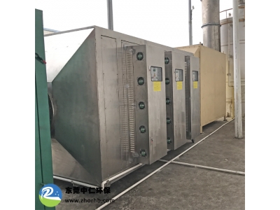 本設(shè)備利用特制的高能高臭氧UV紫外線光束照射工業(yè)廢氣,裂解惡臭/工業(yè)廢氣,如:氨、三甲胺、硫化氫、甲硫氫、甲硫醇、甲硫醚、二甲二硫、二硫化碳和苯乙烯,硫化物H2S、VOC、苯、甲苯、二甲苯等分子鏈結(jié)構(gòu),使有機(jī)或者無(wú)機(jī)高分子惡臭化合物分子鏈,在高能紫外線光束照射下,降解轉(zhuǎn)變成低分子化合物,如:CO2、 H2O等。