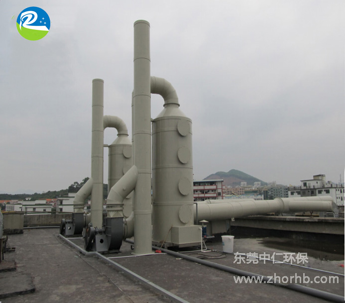 如果是酸性氣體,比如含硫氣體,氯化氫氣體等,需要在水中加入氫氧化鈉或者氫氧化鈣等堿性藥品;酸霧廢氣由風(fēng)管引入凈化塔,經(jīng)過填料層,廢氣與氫氧化鈉吸收液進(jìn)行氣液兩相充分接觸、吸收中和反應(yīng),酸霧廢氣經(jīng)過凈化后,再經(jīng)除霧板脫水除霧后由風(fēng)機(jī)排入大氣。吸收液在塔底經(jīng)水泵增壓后在塔頂噴淋而下,最后回流至塔底循環(huán)使用。凈化后的酸霧廢氣達(dá)到國家和地方排放標(biāo)準(zhǔn)的排放要求。