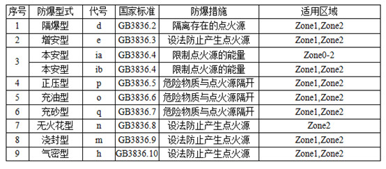 3.防爆類型在危險(xiǎn)場(chǎng)所的適用性 表4防爆類型在危險(xiǎn)場(chǎng)所的適用性