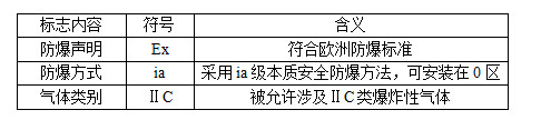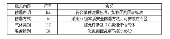 儀表的防爆標(biāo)志含義 Ex(ia)ⅡC T6的含義: