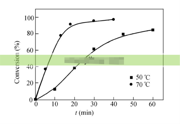 苯乙烯聚集的時間/d 聚合反應(yīng)的轉(zhuǎn)化率隨時間和溫度的變化趨勢