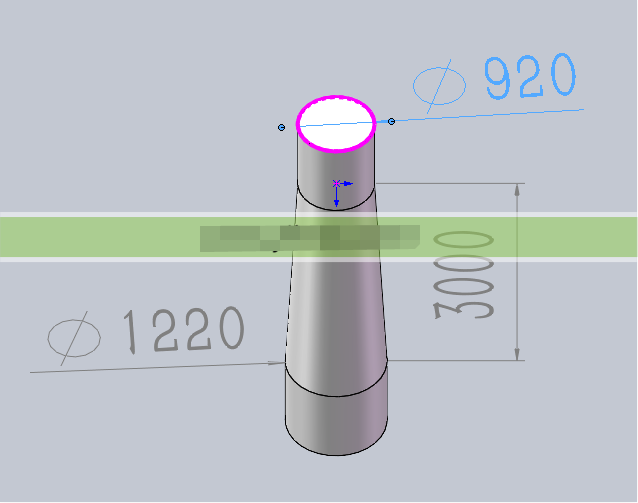 其中整體高度H=15m,出口管徑D1=920mm,底座直徑D2=1220mm(此處僅為美觀,故略微加寬)。