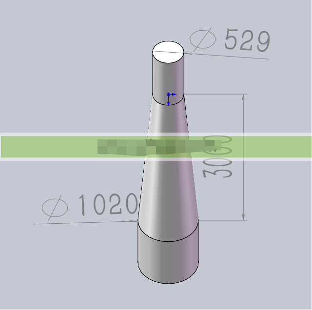 其中W:煙囪出口流速,n為排氣筒數(shù)量。 得煙囪出口直徑D1≥842mm即可。 參考標(biāo)準(zhǔn)管徑列表,以及流速方面需求,選取更易取材DN900作為煙囪設(shè)計(jì)直徑。 依據(jù)《大氣污染物綜合排放標(biāo)準(zhǔn)》(GB16297-1996)新污染源的排氣筒不應(yīng)低于15m,因此煙囪的高度H應(yīng)≥15m。檢驗(yàn)廢氣后,無其他特殊成分,且周圍建筑物均未超過10m,因此確定煙囪設(shè)計(jì)高度為15m。 得煙囪高度H與直徑D之比為15/0.92=17.8≤30。依據(jù)《GB 50051-2013 煙囪設(shè)計(jì)規(guī)范》中,滿足公式: H≤30D 即符合煙囪強(qiáng)度與變形要求,因此煙囪底部直徑D2與煙囪出口直徑D1滿足D2≥D1即可。 實(shí)際使用中,為了增加穩(wěn)定性能的同時,使整體流線更加美觀,因此會使D2略大于D1。參考以往實(shí)際使用經(jīng)驗(yàn)和數(shù)據(jù),公式D2=1.3*D1滿足使用需求。因此確定煙囪整體外形(部分)如圖: