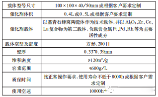 2、催化爐的選型 催化劑種類很多,目前VOCs處理一般選用較多的是蜂窩式貴金屬催化劑,其載體一般為堇青石蜂窩陶瓷。下圖為某公司生產(chǎn)的催化劑性能表僅供參考。