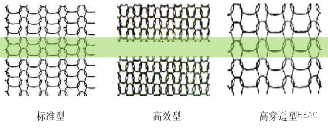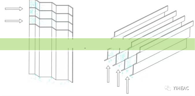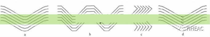 標(biāo)準(zhǔn)型絲網(wǎng)的分離性能介于高效型以及高穿透型之間,主要用于一般場(chǎng)合即用于沒有特殊要求的場(chǎng)合;高效型絲網(wǎng)分離效率最高,主要用于對(duì)除沫要求較高的場(chǎng)合;高穿透型分離效率最低,但是由于其穿透性好,不易堵塞和液泛,故用于氣速較大或氣體液含量較大的場(chǎng)合。 絲網(wǎng)除沫器結(jié)構(gòu)類型:主要有纏繞式結(jié)構(gòu)以及多層式兩種結(jié)構(gòu)。 ①纏繞式結(jié)構(gòu)即用絲網(wǎng)盤卷成所需直徑大小的除沫器,這種結(jié)構(gòu)要求絲網(wǎng)在盤卷時(shí)的波紋交錯(cuò),且疏密一致,否則易產(chǎn)生氣體短路,影響除沫效果。纏繞式結(jié)構(gòu)僅適用于直徑較小的絲網(wǎng)除沫器,直徑一般在150~600 mm的范圍內(nèi)。 ②多層式結(jié)構(gòu)是目前普遍使用的一種結(jié)構(gòu),它是將絲網(wǎng)一層一層地平平,鋪至規(guī)定的層數(shù),在網(wǎng)層上下各放一塊格柵,將網(wǎng)層壓至除沫器所需的高度尺寸, 用定距桿和扎絲將其固定為整塊。多層式網(wǎng)塊的形狀和大小,依據(jù)除沫器的直徑而定。多層式結(jié)構(gòu)除沫器的適用直徑范圍較寬,一般在 300 mm~5200 mm 的范圍內(nèi)。 決定絲網(wǎng)除沫器分離效率的重要條件是入口氣液兩相的速度,若氣速低于臨界值,液滴在氣流中呈懸浮狀,慣性力不夠難以撞擊絲網(wǎng),致使分離效果低;若氣速高于臨界值,容易產(chǎn)生二次夾帶,氣體和液體兩相的分離效果也不理想。目前在氣液兩相分離中使用率最高的除沫器就是絲網(wǎng)除沫器,在化工、石油、醫(yī)藥、機(jī)械、輕工等工業(yè)中均涉及。 三、折流板式除沫器: 原理:氣體夾帶顆粒通過彎折通道時(shí),慣性大的顆粒容易偏離流體流線,從流動(dòng)的氣體中分離出來而撞擊到彎折通道壁面上被捕集,而氣體則通過折流板間流道完成氣液分離過程,主要形式為折流板型除沫器。除沫器的多折向結(jié)構(gòu)增加了霧沫被捕集的機(jī)會(huì),未被除去的霧沫在下一個(gè)轉(zhuǎn)彎處經(jīng)過相同的作用而被捕集,多級(jí)折流板反復(fù)作用大大提高分離效率。 折流板除沫器常見的葉片形式: 如下圖所示,按其幾何形狀可分為流線型河折線型,也就是通常所見的圓弧形(a)、梯形(b)、三角形(c)、弧鉤型(d)。