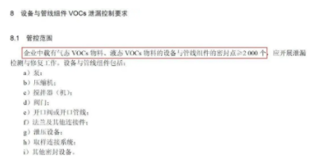 即對于企業(yè)中載有氣態(tài)VOCs物料、液態(tài)VOCs物料的設(shè)備與管線組件密封點(diǎn)小于2000個的,不強(qiáng)制開展泄露檢測與修復(fù)工作。 來源:環(huán)保