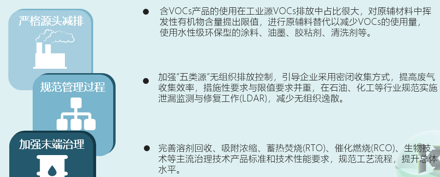 在《中共中央關(guān)于制定國民經(jīng)濟和社會發(fā)展第十四個五年規(guī)劃和二〇三五年遠景目標的建議》中明確提出了“強化多污染物協(xié)同控制和區(qū)域協(xié)同治理,加強細顆粒物和臭氧協(xié)同控制,基本消除重污染天氣。”2021年作為“十四五”的開局之年,VOCs減排任務(wù)勢必非常繁重。 行業(yè)治理相關(guān)政策、排放標準、技術(shù)指南等管理體系將繼續(xù)完善,治理重心將繼續(xù)以重點行業(yè)(石油、化工、涂裝、印刷、油氣回收、制藥等)的污染治理為主,面對這些情況,企業(yè)必須增強主體責任認識,提升VOCs綜合治理水平,完善VOCs監(jiān)測監(jiān)控設(shè)施,完成自查自糾,實現(xiàn)自主減排。 三、 企業(yè)VOCs全流程治理規(guī)范案例 VOCs治理全流程示意圖