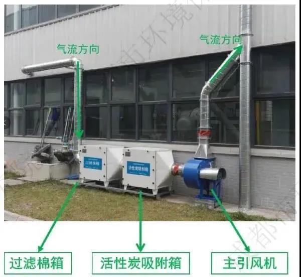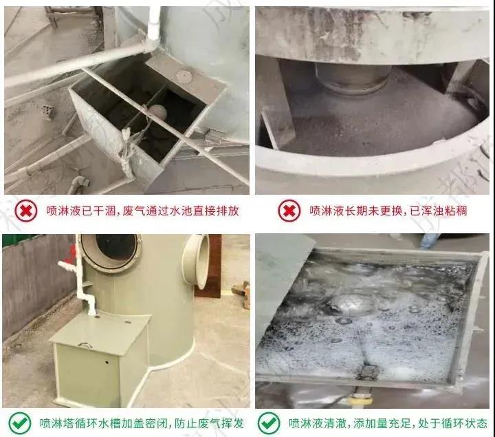 案例2:噴淋+活性炭吸附噴淋洗滌即可以降低廢氣溫度又可以吸收部分易溶于水的廢氣和粉塵,利于活性炭吸附。必須定期檢查洗滌液及活性炭質(zhì)效,及時更換廢液、廢活性炭,保證清洗及吸附效果。 廢氣治理設(shè)備應(yīng)當先于生產(chǎn)設(shè)備開啟,后于生產(chǎn)設(shè)備關(guān)停。