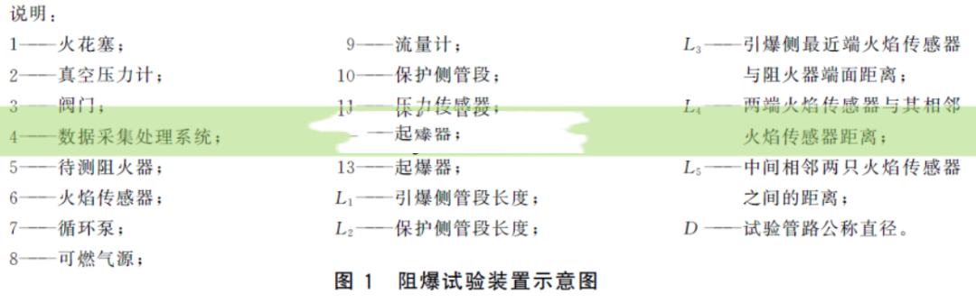 3.1.1、試驗(yàn)管路的規(guī)格應(yīng)與阻火器規(guī)格一致。引爆側(cè)管段和保護(hù)側(cè)管段長(zhǎng)度L1 和L2 應(yīng)根據(jù)管徑和待測(cè)阻火器設(shè)計(jì)阻火速度值設(shè)置。如果因?yàn)楸Wo(hù)側(cè)管段長(zhǎng)度不夠而影響火焰速度的提高,可以將尾端打開(kāi)再點(diǎn)火起爆。為了增大火焰加速度,允許在火焰引爆側(cè)設(shè)置擾動(dòng)裝置。 3.1.2、在引爆側(cè)應(yīng)安裝4支火焰?zhèn)鞲衅骷耙恢毫鞲衅?頻率≥100kHz)監(jiān)測(cè)阻火速度及爆轟壓力 其中L3=200mm±50mm;L4≥3D 且不小于100mm;L5≥500mm。阻火器端面距最遠(yuǎn)端傳感器的距離不小于30D 3.1.3、壓力應(yīng)通過(guò)安裝在引爆側(cè)的壓力傳感器(頻率≥100kHz)測(cè)量,傳感器的安裝位置距阻火器,接口的長(zhǎng)度應(yīng)為200mm±50mm。 3.1.4、打開(kāi)空氣閥門,開(kāi)啟循環(huán)泵,清掃試驗(yàn)管段內(nèi)的氣體。關(guān)閉空氣閥門,向試驗(yàn)裝置內(nèi)通入試驗(yàn)氣體)直至Pi≥P0 為止(P0 為適用介質(zhì)最高工作壓力的生產(chǎn)單位公布值)。開(kāi)啟起爆器,點(diǎn)燃預(yù)混氣。共進(jìn)行3次連續(xù)試驗(yàn)。在保護(hù)側(cè)用火焰?zhèn)鞲衅鞅O(jiān)測(cè)是否成功阻火,所有13次阻火試驗(yàn)應(yīng)全部阻火成功。每次試驗(yàn)的火焰速度值不低于設(shè)計(jì)的安全阻火速度值。 3.1.5、在連續(xù)13次試驗(yàn)中,有一次火焰速度小于安全阻火速度生產(chǎn)單位設(shè)計(jì)值,則應(yīng)補(bǔ)做試驗(yàn),使火焰速度大于或等于安全阻火速度生產(chǎn)單位設(shè)計(jì)值,否則安全阻火速度值贏降低到13次試驗(yàn)中火速度最小的值。若連續(xù)13次試驗(yàn)中有一次阻火失敗,并且火焰速度接近設(shè)計(jì)的安全阻火速度值,則認(rèn)為該阻火器阻火性能不合格。 3.1.6、試驗(yàn)應(yīng)記錄如下數(shù)據(jù): (a)最大爆炸壓力; (b)試驗(yàn)管規(guī)格; (c)試驗(yàn)介質(zhì); (d)試驗(yàn)介質(zhì)濃度。 3.2適用介質(zhì)試驗(yàn) 3.2.1實(shí)驗(yàn)裝置見(jiàn)圖1,實(shí)驗(yàn)程序見(jiàn)以上安全阻火速度試驗(yàn) 2.2.2對(duì)于爆燃試驗(yàn):試驗(yàn)管路的規(guī)格應(yīng)與阻火器規(guī)格一致。 試驗(yàn)管路管長(zhǎng)L1 應(yīng)不小于10D 且不超過(guò)50D(碳?xì)浠衔?空氣混合氣體-ⅡA、ⅡB1、ⅡB2、ⅡB3); 試驗(yàn)管路管長(zhǎng)L1 應(yīng)不小于10D 且不超過(guò)30D(氫氣/空氣混合氣體-ⅡB、ⅡC)。L2值應(yīng)為50D(碳?xì)浠衔?空氣混合氣體-ⅡA、ⅡB1、ⅡB2、ⅡB3); L2 值應(yīng)為30D(氫氣/空氣混合氣體-ⅡB、ⅡC)。 3.2.3對(duì)于穩(wěn)定爆轟試驗(yàn):引爆側(cè)的管路應(yīng)足夠長(zhǎng),并且管端應(yīng)裝配盲板或防爆容器(安裝點(diǎn)火源)。管路中還應(yīng)安裝火焰加速器以減小管路長(zhǎng)度。保護(hù)側(cè)管路長(zhǎng)度L2 為10D,且不小于3m。管端應(yīng)能耐受爆轟。 3.2.4向試驗(yàn)裝置內(nèi)通入試驗(yàn)氣體直至Pi≥Po為止(Po為適用介質(zhì)最高工作壓力的生產(chǎn)單位公布值)。試驗(yàn)介質(zhì)應(yīng)為生產(chǎn)單位規(guī)定適用介質(zhì),試驗(yàn)步驟見(jiàn)3.1.4. 3.2.5共進(jìn)行13次連續(xù)試驗(yàn)。在保護(hù)側(cè)用火焰?zhèn)鞲衅鞅O(jiān)測(cè)是否成功阻火,所有13次阻火試驗(yàn)應(yīng)全部阻火成功。試驗(yàn)記錄應(yīng)符合3.1.6的規(guī)定。 四、阻爆性能 阻爆性能應(yīng)滿足應(yīng)滿足a)或b)的規(guī)定 (A)按2.1規(guī)定的方法進(jìn)行阻爆試驗(yàn),阻火器應(yīng)每次都能阻火。試驗(yàn)后外殼不應(yīng)出現(xiàn)永久變形及損壞。阻火速度不應(yīng)低于生產(chǎn)單位規(guī)定值 (B)按2.2規(guī)定的方法進(jìn)行阻爆試驗(yàn),采用生產(chǎn)單位規(guī)定的適用介質(zhì)(適用介質(zhì)分類見(jiàn)1.3)進(jìn)行試驗(yàn),阻火器應(yīng)每次都能阻火。試驗(yàn)后外殼應(yīng)不出現(xiàn)永久變形及損壞。 以上關(guān)于阻火器的分類及阻火器的性能試驗(yàn)標(biāo)準(zhǔn)為石油氣體管道阻火器中國(guó)家標(biāo)準(zhǔn)GB/T13347-2010。在廢氣治理系統(tǒng)驚醒設(shè)計(jì)時(shí),需要充分考慮并選擇帶有依據(jù)此標(biāo)準(zhǔn)GB/T13347-2010或者國(guó)際ISO16852-2016標(biāo)準(zhǔn)進(jìn)行試驗(yàn)的委托試驗(yàn)報(bào)告的阻火器,可靠的防止發(fā)生回火或者高溫氣體回流時(shí)蔓延到阻火器前端設(shè)備和車間。 另外,在進(jìn)行RTO系統(tǒng)設(shè)計(jì)時(shí),除了考慮阻火器被動(dòng)措施以外,還要考慮與主動(dòng)安全措施一起配合使用,比如應(yīng)急系統(tǒng)的響應(yīng)時(shí)間、LEL在線分析系統(tǒng)、氧分析儀以及其他氣體分析儀,水(液)封罐、單向閥、氮封閥等等,阻火器需要安裝在不易產(chǎn)生積液的位置,需要定期清理和吹掃維護(hù)等等。 參考文獻(xiàn):國(guó)家標(biāo)準(zhǔn)GB/T13347-2010