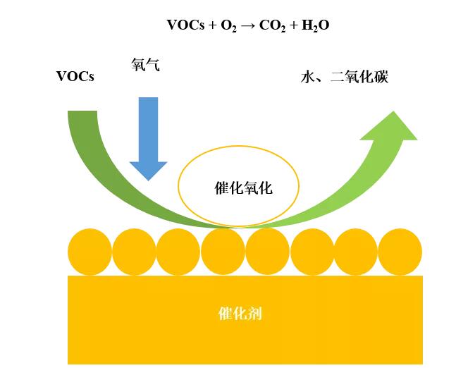 沸石轉(zhuǎn)輪+催化燃燒工藝流程圖 2.3 催化劑 低溫高效催化劑主要以堇青石蜂窩陶瓷為載體、負(fù)載復(fù)合型過(guò)渡金屬/貴金屬作為活性組分。該催化劑具有起燃溫度低、穩(wěn)定性高、壽命長(zhǎng)、成本低等優(yōu)勢(shì),更有適用于高沸點(diǎn),含硫含氯的VOCs組分治理。 2.3.1催化劑工作原理 低溫催化劑治理VOCs的方法為催化氧化法,主要是利用催化劑進(jìn)行氣-固相間的催化反應(yīng),降低有機(jī)廢氣氧化反應(yīng)的活化能,使有機(jī)廢氣在中低溫條件下(<260℃)實(shí)現(xiàn)無(wú)二次污染催化氧化,最終將有機(jī)廢氣轉(zhuǎn)化為無(wú)毒、無(wú)污染的CO2和H2O排出。 催化劑工作原理