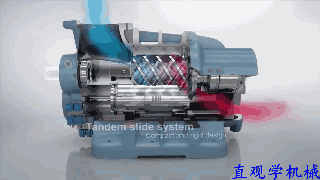 制冷劑遷移是一個(gè)很緩慢的過(guò)程。壓縮機(jī)停機(jī)時(shí)間越長(zhǎng),遷移到潤(rùn)滑油中的制冷劑就會(huì)越多。只要蒸發(fā)器中存在液態(tài)制冷劑,這一過(guò)程就會(huì)進(jìn)行。由于溶解了制冷劑的潤(rùn)滑油較重,它會(huì)沉在曲軸箱的底部,而浮在上面的潤(rùn)滑油還可以吸收更多的制冷劑。 除容易引起液擊外,制冷劑遷移還會(huì)稀釋潤(rùn)滑油。很稀的潤(rùn)滑油被油泵送到各摩擦面后,可能沖涮掉原有油膜,引起嚴(yán)重磨損(這種現(xiàn)象常稱(chēng)為制冷劑沖刷)。過(guò)渡磨損會(huì)使配合間隙變大,引起漏油,從而影響較遠(yuǎn)部位的潤(rùn)滑,嚴(yán)重時(shí)會(huì)引起油壓保護(hù)器動(dòng)作。 由于結(jié)構(gòu)原因,空冷壓縮機(jī)啟動(dòng)時(shí)曲軸箱壓力的降低會(huì)緩慢得多,起泡現(xiàn)象不很劇烈,泡沫也很難進(jìn)入氣缸,因此空冷壓縮機(jī)不存在帶液?jiǎn)?dòng)液擊問(wèn)題。 理論上講,壓縮機(jī)安裝曲軸箱加熱器(電熱器)可以有效防止制冷劑遷移。短時(shí)間停機(jī)(比如在夜間)后,維持曲軸箱加熱器通電,可以使?jié)櫥蜏囟嚷愿哂谙到y(tǒng)其它部位,制冷劑遷移不會(huì)發(fā)生。長(zhǎng)時(shí)間停機(jī)不用(比如一個(gè)冬天)后,開(kāi)機(jī)前先加熱潤(rùn)滑油幾個(gè)或十幾個(gè)小時(shí),可以蒸發(fā)掉潤(rùn)滑油中的大部分制冷劑,既可以大大減小帶液?jiǎn)?dòng)時(shí)液擊的可能性,也可以降低制冷劑沖刷造成的危害。但實(shí)際應(yīng)用中,停機(jī)后維持加熱器供電或者開(kāi)機(jī)前十幾小時(shí)先給加熱器供電,是有難度的。因此,曲軸箱加熱器的實(shí)際效果會(huì)大打折扣。 對(duì)于較大系統(tǒng),停機(jī)前讓壓縮機(jī)抽干蒸發(fā)器中液態(tài)制冷劑(稱(chēng)為抽空停機(jī)),可以從根本上避免制冷劑遷移。而回氣管路上安裝氣液分離器,可以增加制冷劑遷移的阻力,降低遷移量。 當(dāng)然,通過(guò)改進(jìn)壓縮機(jī)結(jié)構(gòu),可以阻止制冷劑遷移,并減緩潤(rùn)滑油起泡程度。通過(guò)改進(jìn)回氣冷卻型壓縮機(jī)內(nèi)的回油路徑,在電機(jī)腔與曲軸箱遷移的通道上增加關(guān)卡(回油泵等),停機(jī)后即可切斷通路,制冷劑無(wú)法進(jìn)入曲軸腔;減小進(jìn)氣道與曲軸箱的通道截面可以減緩開(kāi)機(jī)時(shí)曲軸箱壓力下降速度,進(jìn)而控制起泡的程度和泡沫進(jìn)入氣缸的量。 (3)潤(rùn)滑油太多 半封閉壓縮機(jī)通常都有油視鏡,以便觀察油位高低。油位高于油視鏡范圍,說(shuō)明油太多了。油位太高,高速旋轉(zhuǎn)的曲軸和連桿大頭就可能頻繁撞擊油面,引起潤(rùn)滑油大量飛濺。飛濺的潤(rùn)滑油一旦竄入進(jìn)氣道,帶入氣缸,就可能引起液擊。 大型制冷系統(tǒng)安裝調(diào)試時(shí),往往需要適當(dāng)補(bǔ)充潤(rùn)滑油。但對(duì)于回油不好的系統(tǒng),要認(rèn)真尋找影響回油的根源,一味地補(bǔ)充潤(rùn)滑油是危險(xiǎn)的。即使暫時(shí)油位不高,也要注意潤(rùn)滑油突然大量返回時(shí)(比如化霜后)可能造成的危險(xiǎn)。潤(rùn)滑油引起的液擊并不罕見(jiàn)。 液擊是壓縮機(jī)常見(jiàn)故障。發(fā)生液擊,表明系統(tǒng)或維護(hù)中一定存在問(wèn)題,需要加以糾正。認(rèn)真觀察分析系統(tǒng)的設(shè)計(jì)、施工和維護(hù),不難找到引起液擊的根源。不從根源上防止液擊,而簡(jiǎn)單地將故障壓縮機(jī)維修或更換一臺(tái)新壓縮機(jī),只能使液擊再次發(fā)生。 螺桿壓縮機(jī): 液擊會(huì)引起振動(dòng)、增加噪聲,轉(zhuǎn)子和軸承(受力過(guò)大)而受損;嚴(yán)重的液擊也會(huì)損壞設(shè)備、引起事故。 工作動(dòng)圖: