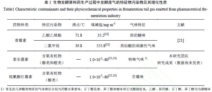 生物發(fā)酵制藥是傳統(tǒng)制藥行業(yè)中的重要組成部分。隨著生物技術和醫(yī)藥技術的發(fā)展,我國已成為全球最大的抗生素類藥品的生產(chǎn)國與出口國,同時也是抗生素行業(yè)對環(huán)境造成污染最嚴重的國家之一。每年都有大量抗生素被應用于人類疾病治療和養(yǎng)殖業(yè)中。近年來,受到“限抗令”和環(huán)保政策的影響,生物發(fā)酵法制備抗生素的制藥企業(yè)受到一定沖擊,但2019 年我國抗生素產(chǎn)量仍達到21.8 萬t,其中82%被國內(nèi)消耗,其余出口至國外。除抗生素外,維生素及其衍生物等也是生物發(fā)酵制藥企業(yè)的主要產(chǎn)品,每年可達到30多萬t 的產(chǎn)量。 在以上藥品的巨大需求和大量生產(chǎn)背景下,生物發(fā)酵制藥過程中產(chǎn)生的揮發(fā)性有機物(VOCs)和異味是制藥企業(yè)不可忽視的潛在危險源,如不能用最優(yōu)的方法處理,對生產(chǎn)員工、周邊居民的健康和企業(yè)附近生態(tài)環(huán)境會產(chǎn)生嚴重危害。 一、揮發(fā)性有機物及異味特征 生物發(fā)酵制藥過程會產(chǎn)生眾多揮發(fā)性有機物(VOCs)和一些刺激性異味(如臭味、甜味、芳香味)。這些VOCs 大多含有異味,因此,VOCs 和異味有很大的重疊,即異味的來源主要是VOCs。除此以外,異味物質(zhì)還包括有機揮發(fā)性酸(VFAs)和H2S、NH3 等無機物。世界衛(wèi)生組織對VOCs定義范圍較寬,包括了常溫下沸點50~260℃的各種有機化合物。我國多個行業(yè)的VOCs 排放標準中,VOCs 是指常溫下飽和蒸汽壓大于70Pa、常壓下沸點在260℃以下的有機化合物,或在20℃條件下,蒸汽壓大于或者等于10Pa 且具有揮發(fā)性的全部有機化合物。2018年制藥工業(yè)大氣污染物企業(yè)邊界排放標準污染物限值(mg•m-3):苯0.4,甲醛0.2,三氯乙烯0.1,硫酸二甲酯0.5,二氯甲烷4.0,非甲烷有機化合物(NMOC)4.0,臭氣濃度20。 2019 年7 月,生態(tài)環(huán)境部印發(fā)《重點行業(yè)揮發(fā)性有機物綜合治理方案》,指出VOCs 是大氣顆粒物(PM2.5)和O3的重要前體物,在一定程度上加快了PM2.5 和O3的形成。在大氣和太陽光作用下VOCs可生成有機氣溶膠和O3,造成光化學煙霧、霧霾、腐蝕性降雨等環(huán)境污染。VOCs 與異味污染物具有一些共同的特征,如具有刺激性氣味(含臭味),經(jīng)過吸入、接觸可致中毒,部分組分長期吸入或接觸可致癌、致突變,對人和動物胎兒致畸等,給人類健康造成極大危害。我國VOCs 和異味污染源治理工作起步較晚,相對于顆粒物、SO2、氮氧化物等的污染控制,治理技術不夠完善,使得VOCs 和異味排放及時、高效治理成為發(fā)酵制藥企業(yè)的心病。2018 年以來,中央派出多個環(huán)境保護督察組分赴各地督辦制藥企業(yè)異味擾民案件。寧夏泰瑞制藥、內(nèi)蒙古聯(lián)邦制藥、江西匯仁藥業(yè)都因排放惡臭異味廢氣而被關?;蛲I(yè)整頓。 表1為生物發(fā)酵原料藥生產(chǎn)過程中提取廢氣的特征污染物及其理化性質(zhì)。
