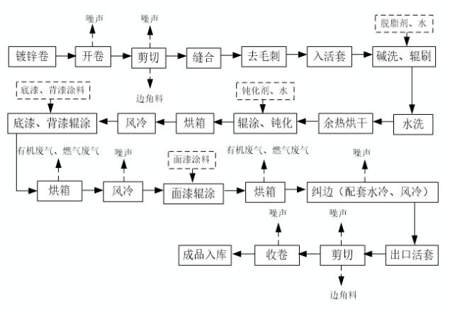 一、適用范圍 本指南適用于金屬卷材、管材、型材生產(chǎn)過程中產(chǎn)生的揮發(fā)性有機物污染控制,并供其他類型金屬材料生產(chǎn)過程中產(chǎn)生的揮發(fā)性有機物污染控制參考。上述金屬卷材、管材、型材制造,按GB/T 4754-2017,行業(yè)類別屬于金屬結(jié)構(gòu)制造(C3311)、建筑裝飾及水暖管道零件制(C3352)、金屬表面處理及熱處理加工(C3360)。 二、生產(chǎn)工藝與VOCs產(chǎn)排情況 以金屬卷材制造為例,生產(chǎn)工藝如下: