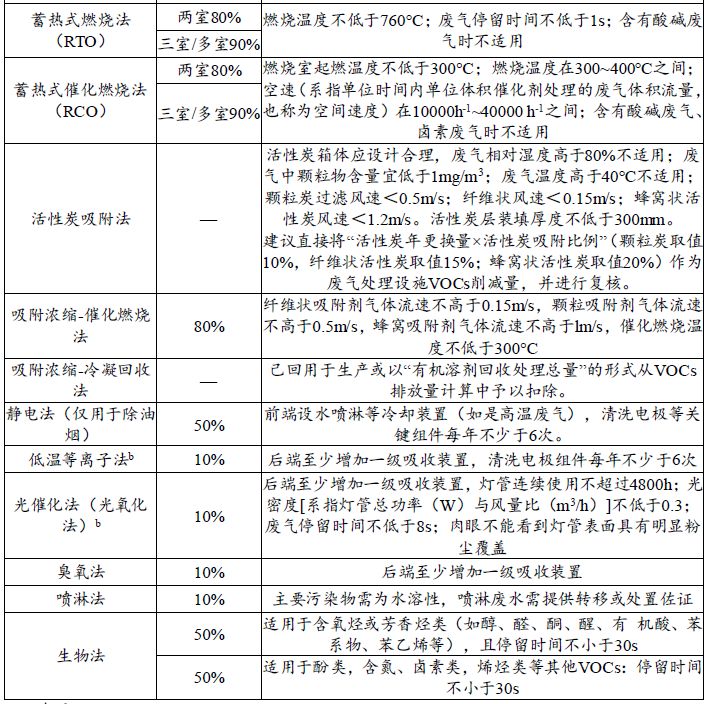 廣東省生態(tài)環(huán)境廳去年發(fā)布了《廣東省工業(yè)源揮發(fā)性有機物減排量核算方法(試行)》,其中文件中“表4.5-2廢氣收集集氣效率參考值”對各類VOCs治理工藝有凈化效率的定性界定,以及對每個取值有個“取值說明”的描述,貼出如下,