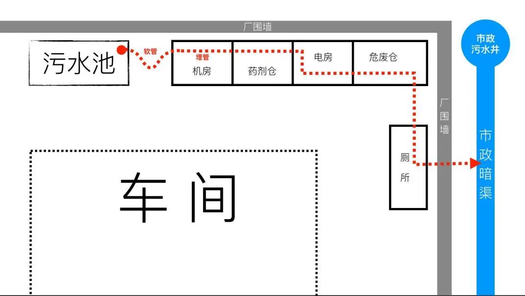 長(zhǎng)安一家五金加工企業(yè)處心積慮偷排重金屬超標(biāo)廢水,或?qū)⒚媾R最高100萬(wàn)元的行政罰款。 今年4月,生態(tài)環(huán)境部門接群眾舉報(bào),長(zhǎng)安鎮(zhèn)新民社區(qū)某個(gè)污水井曾有淺綠色污水流出。經(jīng)過(guò)一段時(shí)間的摸排和走訪,附近一家東莞市山X五金有限公司進(jìn)入了執(zhí)法人員的視野。該公司是一家五金加工生產(chǎn)企業(yè),已辦理相關(guān)環(huán)保手續(xù),設(shè)有前處理、蝕刻、電泳、涂布等工藝和生產(chǎn)設(shè)備,生產(chǎn)過(guò)程中有廢水產(chǎn)生。 近日,市生態(tài)環(huán)境局成立夜間專項(xiàng)執(zhí)法組到企業(yè)一探究竟!結(jié)果怎樣? 1、 可疑軟管接駁廢水集水池進(jìn)水口 2、 軟管從廢水集水池往地面走 3、 軟管從隙縫進(jìn)入機(jī)房 4、 最后接到一個(gè)埋地水管接口 執(zhí)法人員現(xiàn)場(chǎng)看到,一條15米長(zhǎng)的軟管,連接廢水集水池進(jìn)水口一直延伸到旁邊機(jī)房,接到一個(gè)埋地的水管接口。 偷排暗管鉆到地下去了,最后去哪里了? 1、 強(qiáng)力外援登場(chǎng) 2、 機(jī)房暗管現(xiàn)形,延伸向旁邊的藥劑倉(cāng) 3、 藥劑倉(cāng)的暗管現(xiàn)形,又延伸向旁邊的電房 4、 電房暗管現(xiàn)形,“雙”延伸向旁邊的危廢倉(cāng) 5、 危廢倉(cāng)暗管現(xiàn)形,“叒”延伸向危廢倉(cāng)外 6、 危廢倉(cāng)外暗管現(xiàn)形,“叕”延伸向廁所 最后偷排到廁所,我們就猜到是這樣!然而,事實(shí)證明執(zhí)法人員還是太小看這條暗管! 1、 暗管穿過(guò)1號(hào)廁所 2、 暗管穿過(guò)3號(hào)廁所 3、 暗管穿過(guò)4號(hào)廁所 4、 暗管到達(dá)5號(hào)廁所并往墻外方向走 5、 廁所圍墻外找出水口,最終接入市政暗渠。 撬開(kāi)水泥地面發(fā)現(xiàn),埋地暗管在廠內(nèi)先后經(jīng)過(guò)了機(jī)房→藥劑倉(cāng)→電房→危廢倉(cāng)庫(kù)→廁所,最終排出廠外市政污水暗渠,和此前發(fā)現(xiàn)異常的污水井正好連接。強(qiáng)力“外援”撬了近3個(gè)小時(shí),整條埋地暗管迂回曲折,竟然長(zhǎng)達(dá)40米,這樣處心積慮偷排,現(xiàn)場(chǎng)環(huán)保執(zhí)法老兵也是活久見(jiàn)了。 畫個(gè)草圖,給大家見(jiàn)識(shí)見(jiàn)識(shí)!