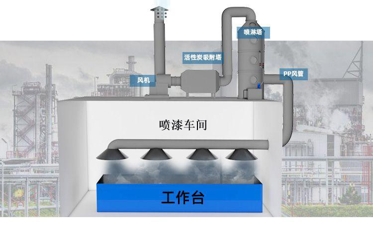 在家具廠的生產(chǎn)流程中,噴漆是必不可少的一道工序,而噴漆噴涂所產(chǎn)生的漆霧與有機(jī)廢氣會對人體產(chǎn)生危害,也會污染環(huán)境,所以家具廠噴漆廢氣更加需要治理后排放。 家具廠噴漆廢氣污染物及其危害性 主要污染物:漆霧、 揮發(fā)性有機(jī)廢氣 漆霧:液態(tài)油漆在氣壓作用下形成的霧化粉塵顆粒物,呈粘稠狀,含有潛在的致癌物質(zhì),對整個大氣環(huán)境造成污染。 揮發(fā)性有機(jī)廢氣:有機(jī)溶劑,主要為三苯(苯、甲苯、二甲苯)用來稀釋油漆,但有機(jī)溶劑極易揮發(fā),不能長時間隨油漆附著於物件表面,在噴涂及晾干過程將全部釋放出來,從而形成有機(jī)廢氣,其特點(diǎn)為無色、極具刺激性,隨空氣的流動而擴(kuò)散到空氣中,能通過人體呼吸或直接作用人體,對人體的呼吸系統(tǒng)、血液、心肺、肝臟、黏膜、眼睛、神經(jīng)等造成傷害。