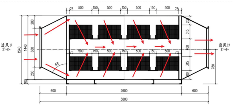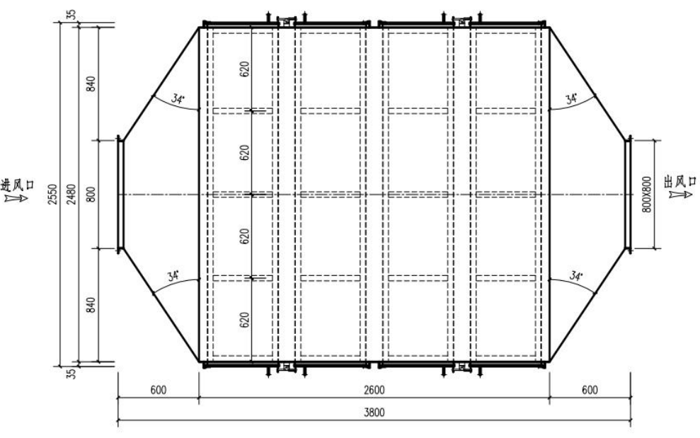 具體可結(jié)合場地要求設(shè)計活性炭抽屜排布和活性炭箱長、寬、高