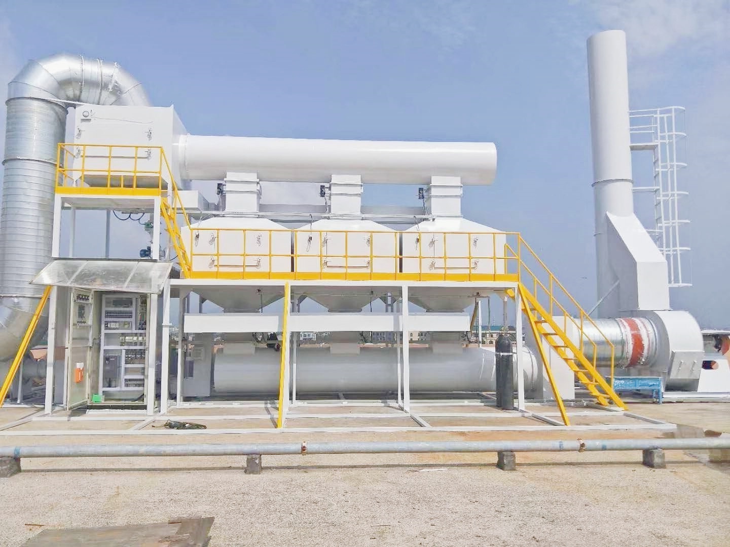 活性炭在經(jīng)過一段時間的吸附,達(dá)到預(yù)定設(shè)計的時間參數(shù)或吸收濃度,再使用低溫分解脫附純凈能量的低溫氣體≤50℃(高安全性)將吸附的 VOC 分子脫附出來,形成高濃度廢氣,脫附后的高濃度廢氣進(jìn)入有機(jī)廢氣催化罐中催化氧化處理,廢氣催化罐為閉式循環(huán)處理,活性炭箱中的有機(jī)廢氣經(jīng)過多次閉式處理,在達(dá)到設(shè)計的要求與時間,活性炭箱的循環(huán)氣體經(jīng)過凈化后可達(dá)標(biāo)排放。 低溫的冷催化分解能量將吸附的 VOC 分子脫附出來,形成高濃度廢氣,脫附后的高濃度廢氣進(jìn)入有機(jī)廢氣催化罐后再進(jìn)入分解罐氧化閉式大循環(huán)處理,活性炭箱中的脫附有機(jī)廢氣經(jīng)過多次催化罐與氧化罐催化氧化分解處理,在達(dá)到設(shè)定的參數(shù)要求后,經(jīng)過多次循環(huán)的循環(huán)氣體達(dá)到凈化排放要求后達(dá)標(biāo)排放,廢氣經(jīng)過整個系統(tǒng)濃縮、脫附、催化氧化、分解后,廢氣形成二氧化碳與水,水沉積在活性炭箱底部,在吸附循環(huán)過程中被吸附蒸發(fā),全程不排廢水。 優(yōu)點:適用于有機(jī)廢氣分解處理,與市場上的RTO\RCO比較,≦50℃溫度脫附安全性大大提高,投資費用相對于市場上的RTO\RCO投資較低,運行成本是市場上的RTO\RCO的30%-40%。 來源:東莞市中仁環(huán)境科技有限公司