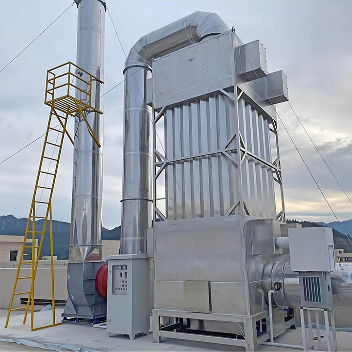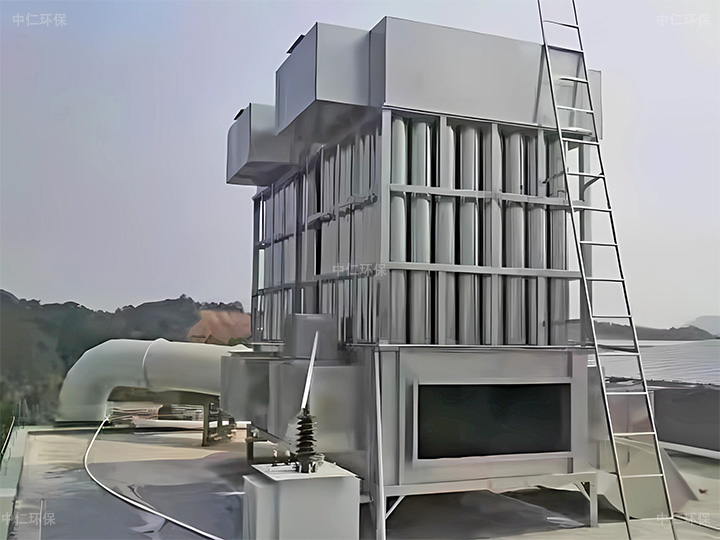 四、濕式靜電除塵設備的特點? (一)高效除塵? 濕式靜電除塵器對細顆粒物(PM2.5)、酸霧、重金屬等污染物具有很高的去除效率,除塵效率可達 99% 以上,能夠滿足嚴格的環(huán)保排放標準。? (二)適應范圍廣? 可處理高濕度、高粉塵濃度、高腐蝕性的煙氣,對煙氣的溫度、濕度、粉塵性質(zhì)等變化具有較強的適應性。例如,在處理燃煤電廠煙氣時,即使煙氣濕度高達飽和狀態(tài),濕式靜電除塵器仍能穩(wěn)定運行。? (三)無二次揚塵? 由于粉塵顆粒在電極表面被水膜捕獲,清灰時通過噴淋沖洗將粉塵直接帶走,避免了干式靜電除塵器中振打清灰時產(chǎn)生的二次揚塵問題,提高了除塵效果。? (四)設備阻力小? 與其他濕式除塵設備相比,濕式靜電除塵器的氣體阻力較小,一般在 200-500Pa 之間,從而降低了風機的能耗,減少了運行成本。? (五)自動化程度高? 配備了完善的控制系統(tǒng),能夠?qū)崿F(xiàn)設備的自動啟停、電壓電流調(diào)節(jié)、噴淋系統(tǒng)控制、故障報警等功能,提高了設備的運行可靠性和管理效率。